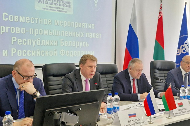 В мероприятии, наряду с представителями бизнеса двух стран, принимали участие руководители территориальных торгово-промышленных палат России и соседнего государства. Председатель Белорусской ТПП Михаил Мятликов возглавил делегацию региональных палат Республики.