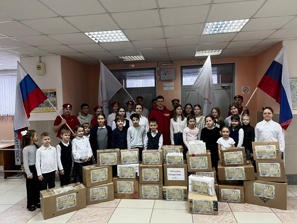 Коллектив школы собрал посылки для бойцов, выполняющих сейчас задачу по денацификации и демилитfризации Украины. В посылках для солдат собраны тёплые зимние вещи, а также продукты питания, предметы личной гигиены.