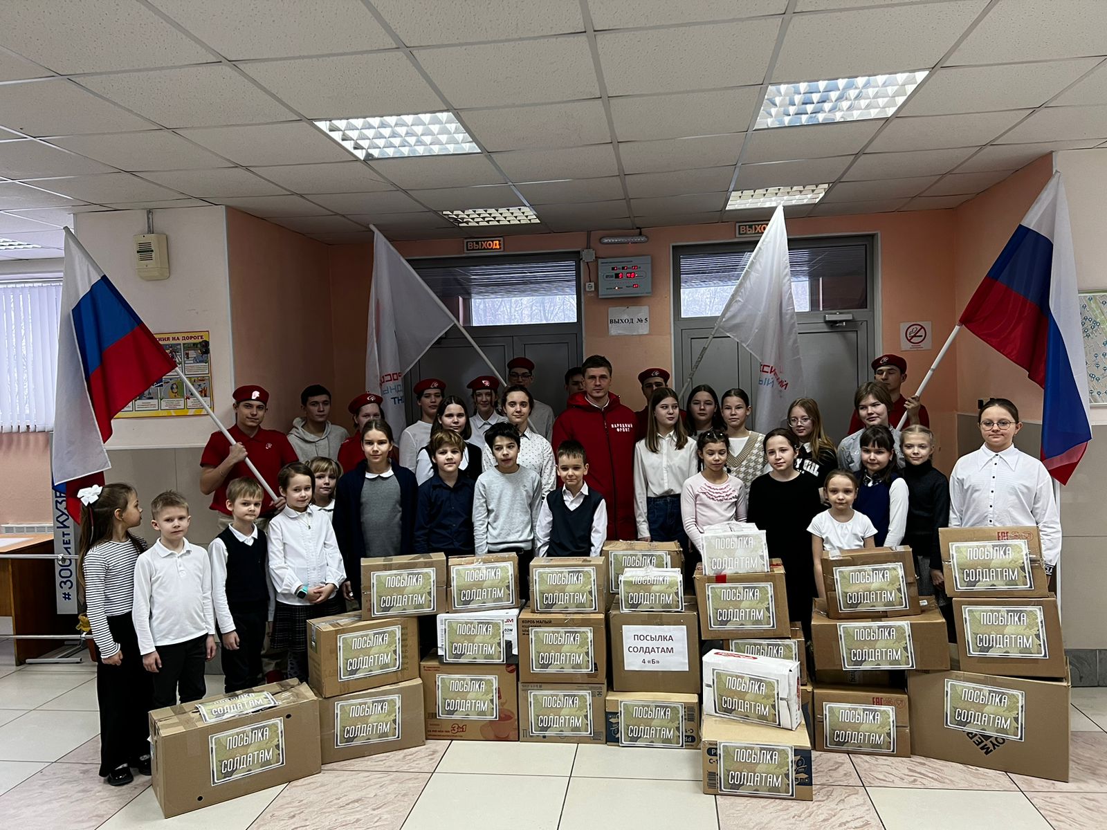 Коллектив школы собрал посылки для бойцов, выполняющих сейчас задачу по денацификации и демилитаризации Украины. В посылках для солдат собраны тёплые зимние вещи, а также продукты питания, предметы личной гигиены.