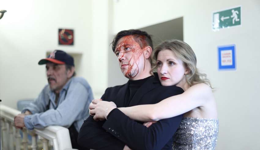 Наши земляки играли «Макбета» в столичном театре имени Пушкина. Были и зал ресторана с наряженной ёлкой и накрытыми столиками, и пьяный корпоратив, и игра в мафию, и офисные интриги, и съемки, которые транслируются в режиме онлайн на два экрана, и рвущая душу игра наших звёзд Илоны Литвиненко и Андрея Ковзеля… В общем, всё, что уже впечатлило сотни новокузнецких зрителей, многие из которых ходили на этот спектакль уже не один раз.