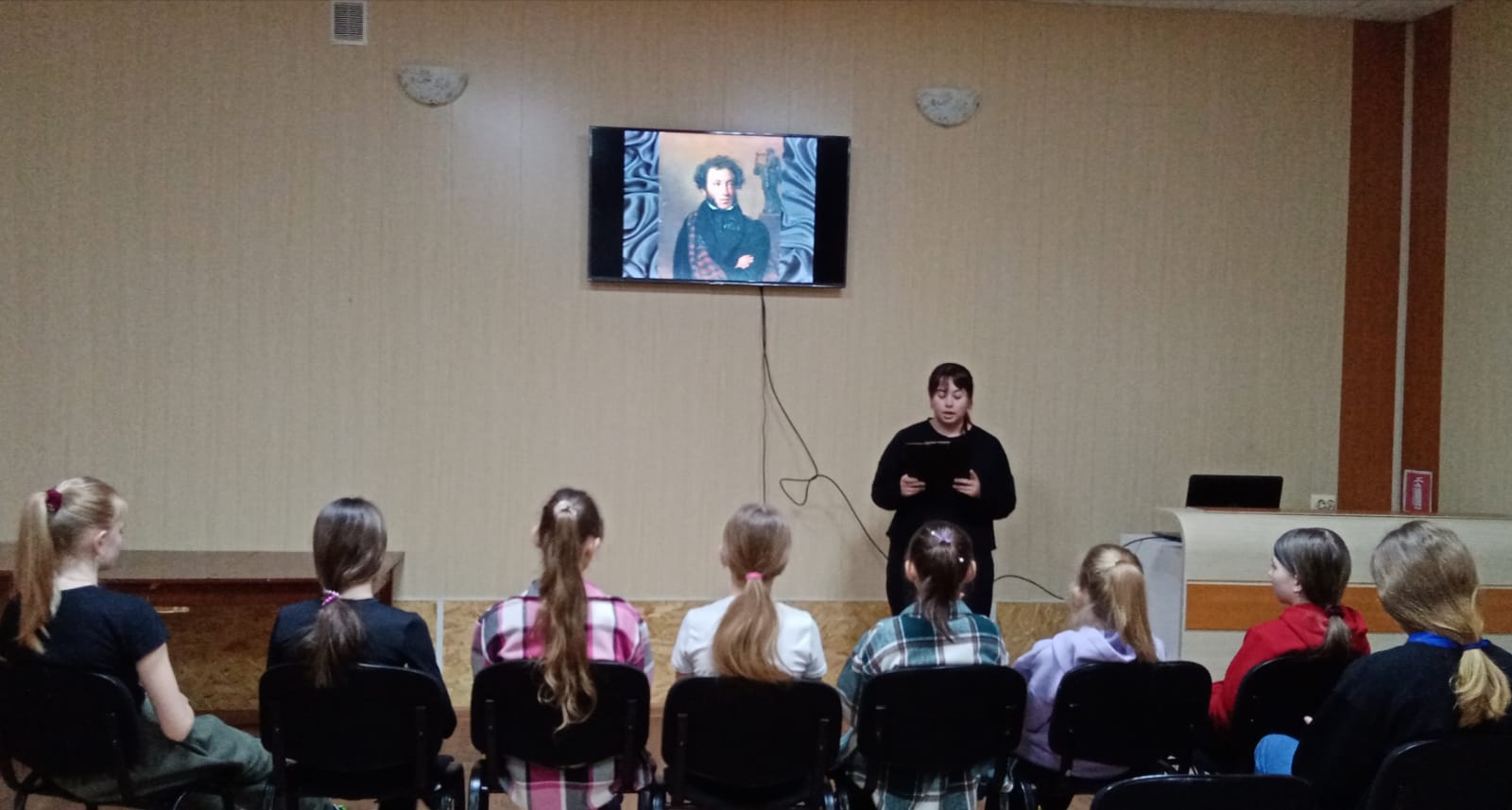 Ребята с замиранием сердца слушали ведущую, читали стихи, рассказывали сказки замечательного поэта. В заключение мероприятия Дарья Евгеньевна провела викторину по творчеству А.С. Пушкина.Ни один вопрос не остался не отвеченным.