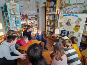 Большой интерес у ребят вызвала книжная выставка «Любимых детских книг творец». Дети с увлечением листали и рассматривали книжки, и даже прочитали по ролям басню «Услужливый» и стихотворение «Как старик корову продавал».