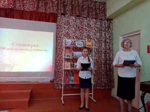 Специалисты Листвянского сельского Дома культуры провели для молодежи беседу «Сталинград: 200 дней мужества и стойкости». Работники Итатского городского Дома культуры, модельной библиотеки семейного чтения и педагоги Итатской средней школы провели для подростков час истории «Сталинград: 200 дней мужества и стойкости».