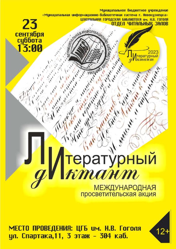 23 сентября в 13:00 в отделе читальных залов Центральной городской библиотеки им. Н.В. Гоголя состоится Международная просветительская акция «Литературный диктант».