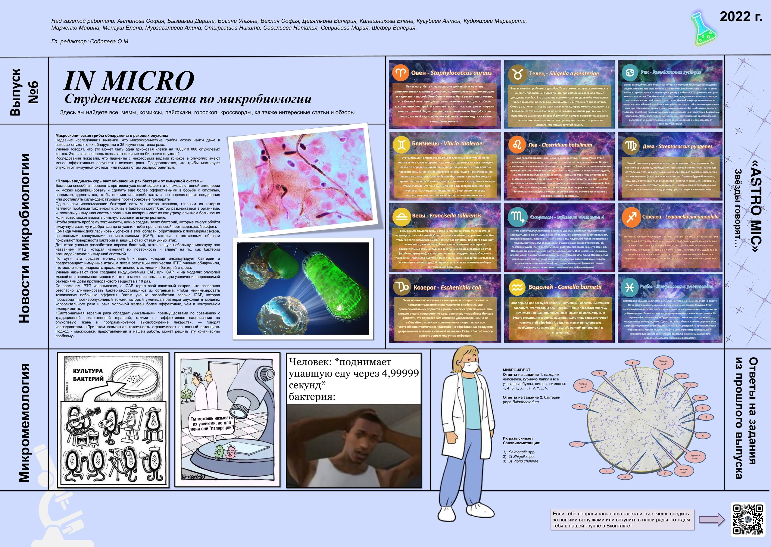 Прочитать зимний бактериальный гороскоп или открыть для себя новые микромемы? Новости, микро-квесты и -ребусы, комиксы, лайфхаки, обзоры, статьи и кроссворды – всё это можно увидеть в студенческой газете кафедры микробиологи и вирусологии Кемеровского государственного медицинского университета Минздрава России «In micro».