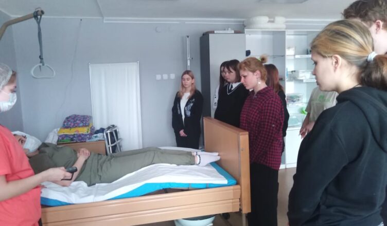 Старшеклассники познакомились со специальностями «медицинская сестра» и «фельдшер». В ходе проведения профессиональных проб было проведено занятие «Погружение в человека». Студенты и преподаватели медицинского колледжа провели мастер-класс «Парентеральные инъекции», учащиеся пробовали на манекенах ставить внутримышечные и внутривенные инъекции, подкожные инъекции. Также был мастер-класс по наложению повязок, и школьники попрактиковались в накладывании различных видов повязок. Учащимся рассказали об уходе за лежачим больными, обработке пролежней. Студенты старших курсов в кабинете педиатрии рассказали об особенностях грудного возраста и уходе за младенцами. Девятиклассники побывали и музее медицинского колледжа.