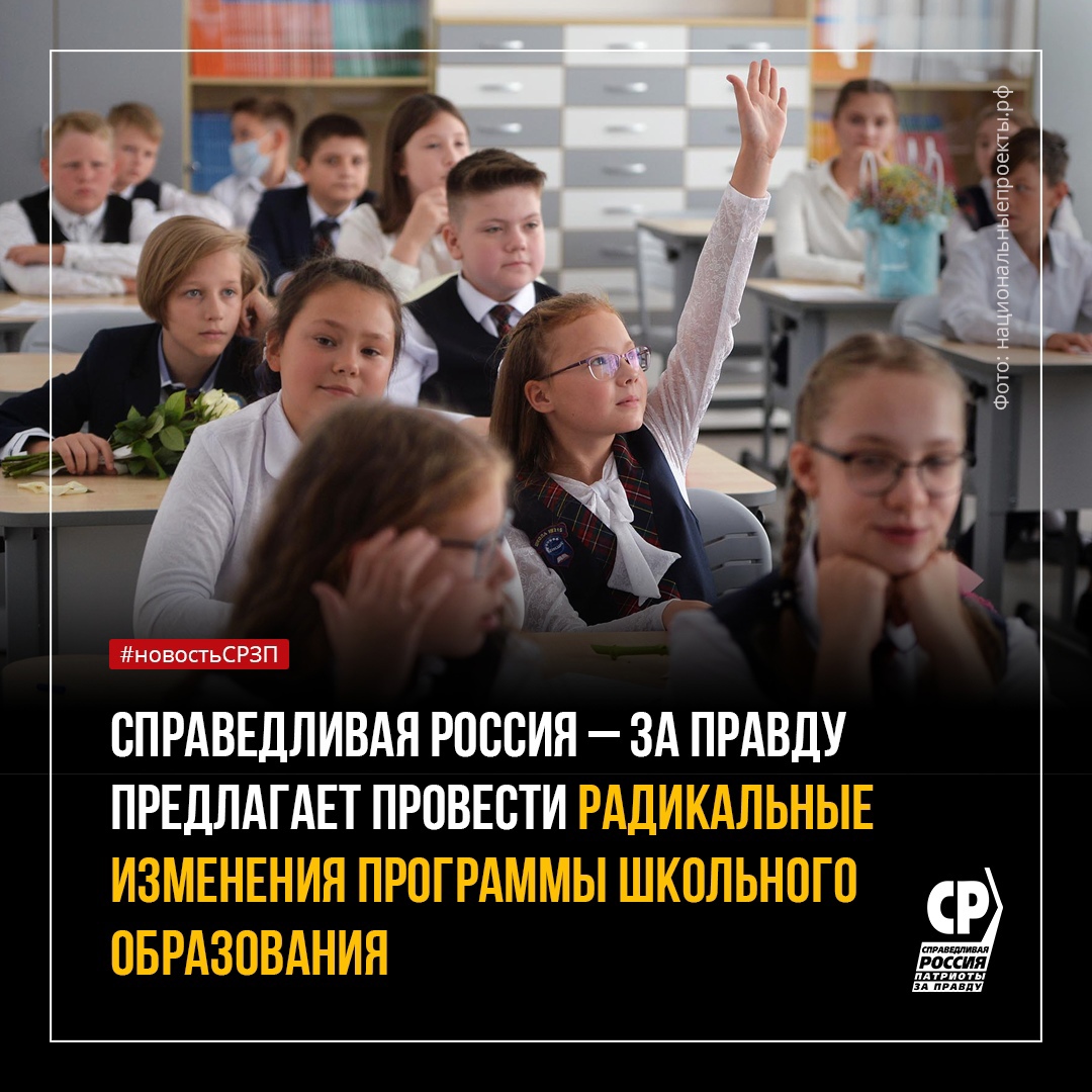 👩🏫📚Социалистическая партия "СПРАВЕДЛИВАЯ РОССИЯ – ПАТРИОТЫ – ЗА ПРАВДУ" предлагает провести радикальные изменения программы школьного образования. Школьники из крупных городов и российской глубинки должны получать абсолютно одинаковые знания, и задача государства – решить эту задачу в максимально короткие сроки. Это создаст для выпускников равные возможности для поступления в вузы, поможет выявить талантливую молодёжь в регионах и будет справедливо с точки зрения развития социального государства.