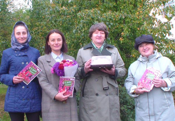 Учителям были вручены поздравительные открытки и сладкий подарок.