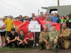 Последняя остановка – Тяжинский округ. В селе Преображенка ребята встретились с реконструкторами сражений Великой Отечественной войны. Участников экспедиции поприветствовал глава Тяжинского муниципального округа Виктор Ефремович Серебров, сделав акцент на значимости патриотического воспитания на родине Героя Кузбасса Николая Ивановича Масалова.