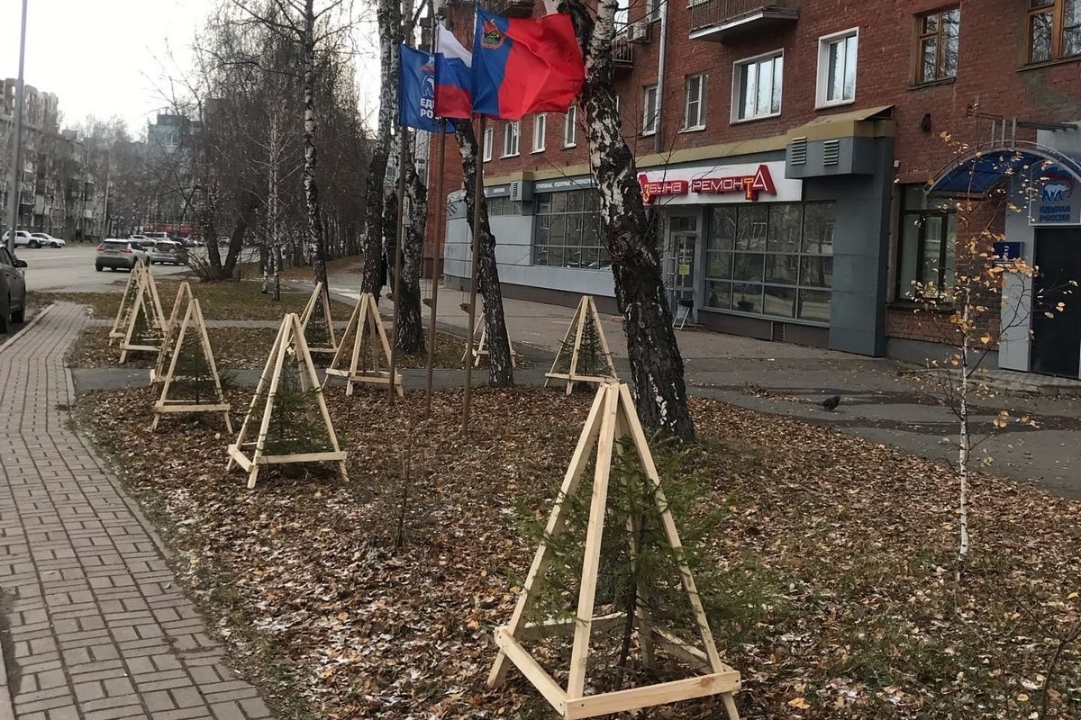 Активисты Кемеровского местного отделения «Единой России», члены фракции партии в Кемеровском Горсовете установили деревянные каркасы для укрытия саженцев елей. Единороссы защитили от снегопадов 19 сибирских елочек, которые этой весной высади рядом с исполкомом местного отделение на улице Пролетарская, 7.