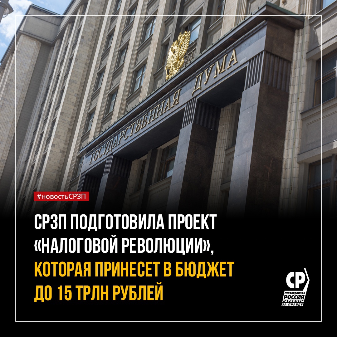Проект "налоговой революции" был подготовлен экономистами Российской академии наук, которые входят в Экспертный совет фракции Социалистической партии "СПРАВЕДЛИВАЯ РОССИЯ – ПАТРИОТЫ – ЗА ПРАВДУ" В Государственной думе РФ. Они математически посчитали и предложили такой интересный ход: ликвидировать четыре налога – налог на прибыль, налог на добавленную стоимость, транспортный налог и налог на недвижимость – и вместо них ввести налог на потребление по ставке 10% на любую транзакцию, которая происходит в нашей стране. Это может принести в бюджет страны дополнительно 15 трлн рублей.