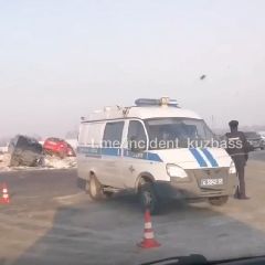 Автомобилисты опубликовали видео последствий дорожного происшествия в паблике Инцидент Кузбасс ВКонтакте.