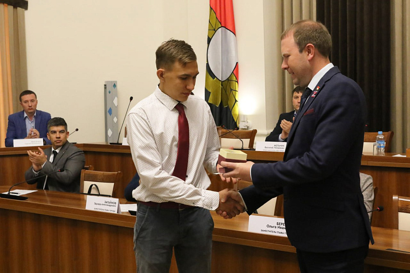 Глава города Кемерово Дмитрий Анисимов наградил девятиклассника Илью Феоктистова, спасшего тонущего ребёнка