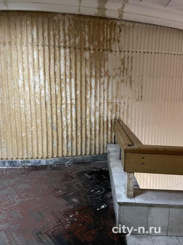 На снимках видны сгнившие и проваливающиеся паркетные полы, подмоченные потёками с крыши стены, грязные потолки в жёлтых разводах и многие другие дефекты внутренней отделки.