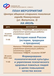 План мероприятий Центра общения старшего поколения на июль 2023 года