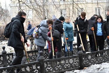 Активные жители Кузнецкого района, сотрудники районной администрации, волонтеры, студенты под бодрящую музыку убирали снег, кололи лед, собирали бросовый мусор и подметали оттаявшую после зимы листву, чтобы это общественное пространство стало уютней и притягательней для горожан.