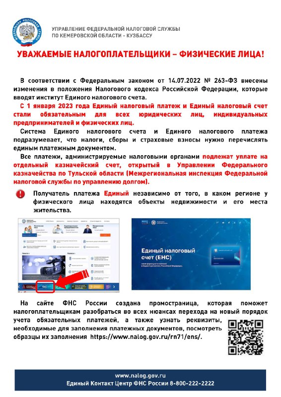 Управление Федеральной налоговой службы по Кемеровской области-Кузбассу информирует о том, что Единый налоговый счет и Единый налоговый платеж стали обязательными для всех.