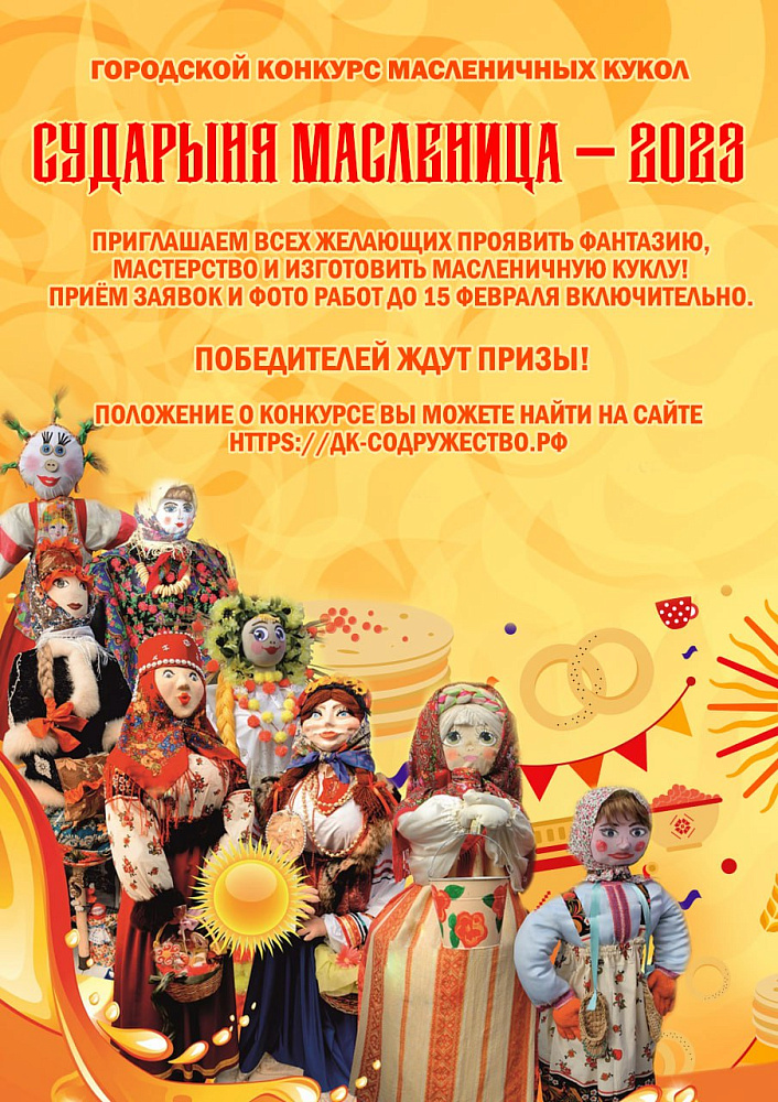 Заявки и фотографии работ принимаются до 13 февраля, куклы, отобранные конкурсной комиссией, будут представлены на городском праздничном мероприятии Масленица 26 февраля.