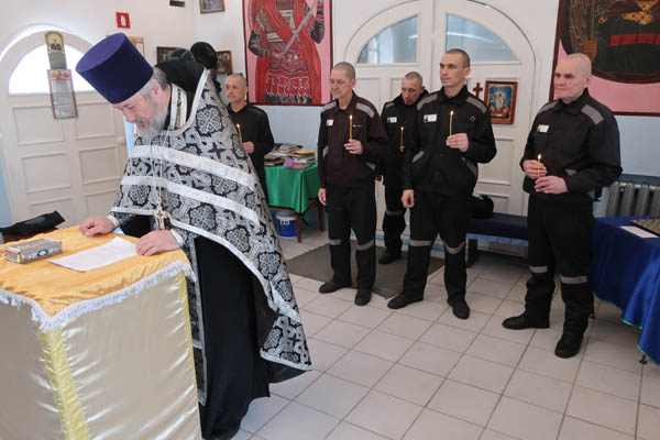 Храм учреждения посетил настоятель отец Владимир. В нем он провел с осужденными беседы, а также вместе с желающими читали молитвы “О заключенных под стражу”, “О исполнении правосудия”, “О умножении любви в семьях осужденных”,