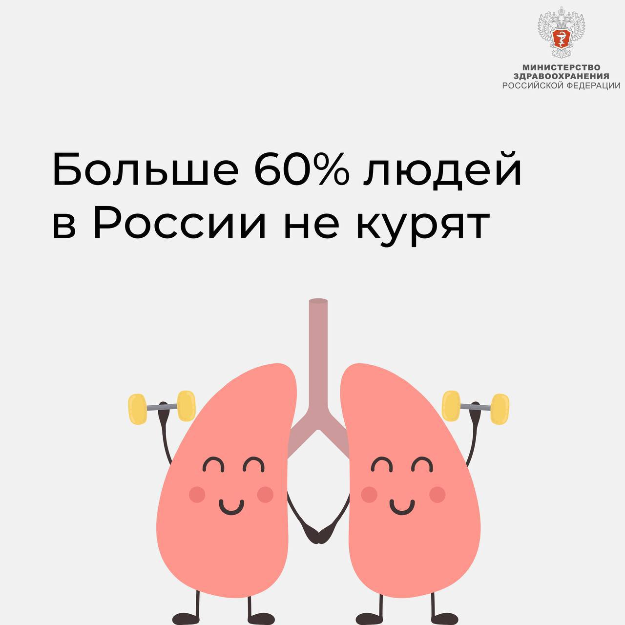 По итогам выборочного наблюдения Росстата ( https://t.me/rosstat_official ) 2022 года почти 69 % населения в РФ отмечали, что не курят совсем и не курили ранее.