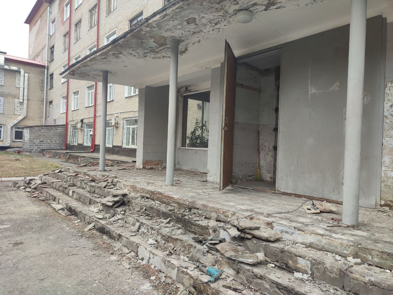 В здании пятого корпуса Прокопьевской городской больницы по ул.Подольская, 12 начался ремонт входной группы.