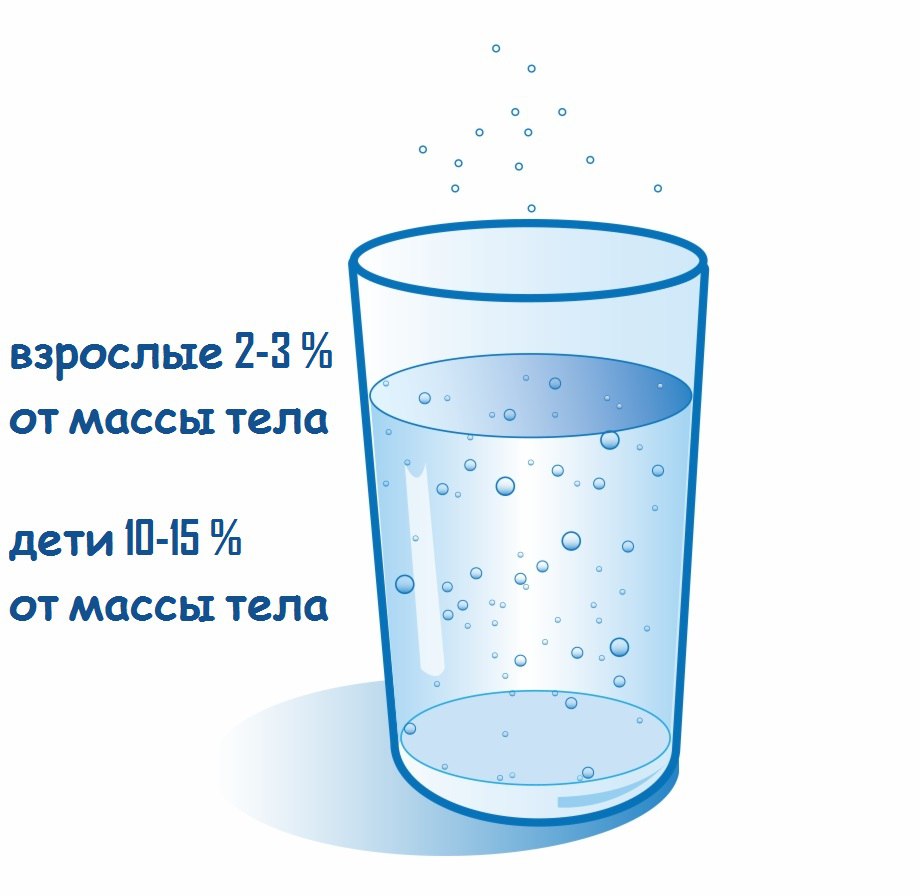 В карточке указано среднее потребление жидкости в день для взрослых и для детей.