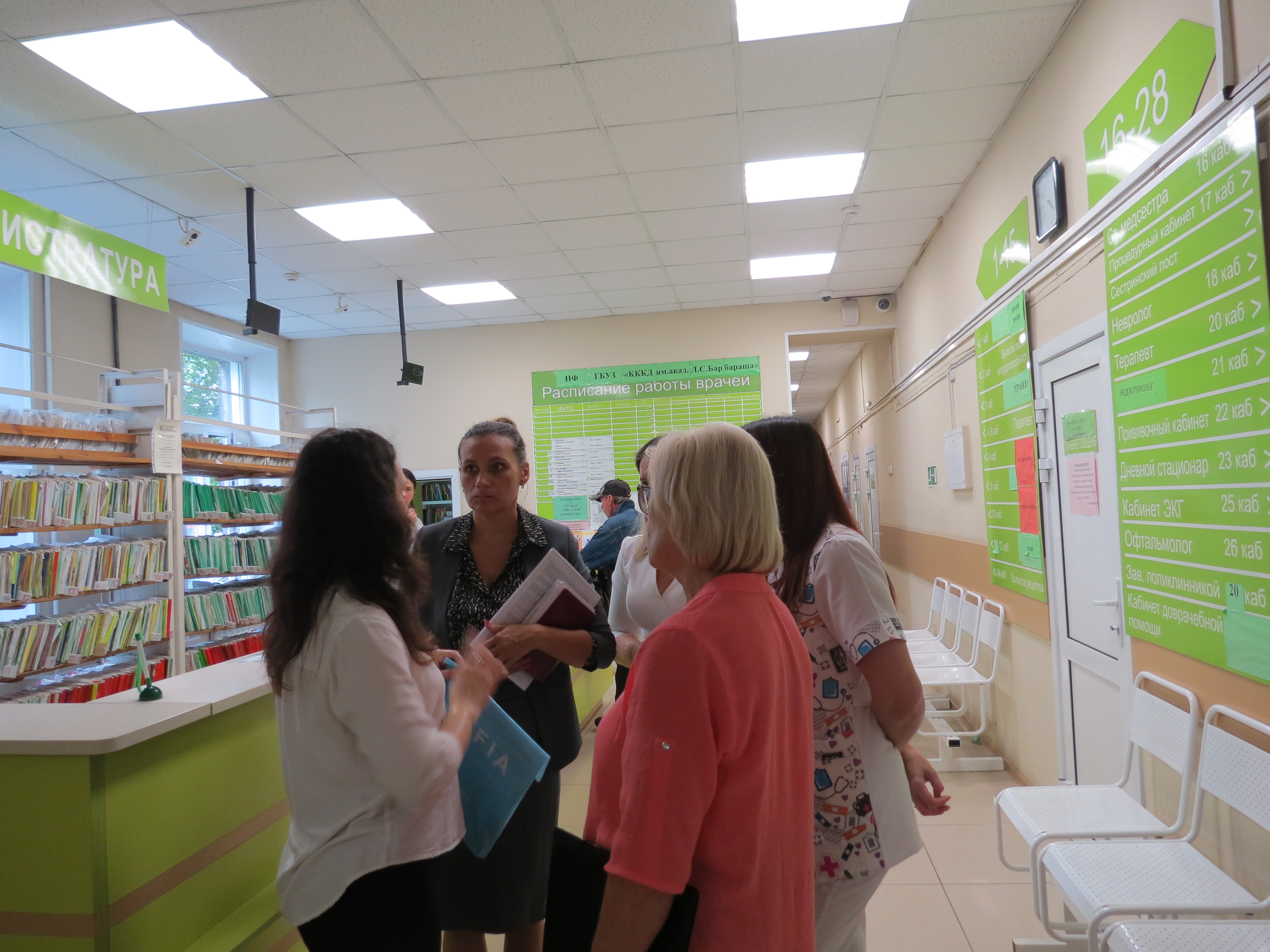 5 сентября начальник организации ОМС Наталья Петрова и главный специалист Надежда Димитрова провели встречи в поликлиниках Новокузнецкого филиала ГБУЗ «Кузбасский клинический кардиологический диспансер им.