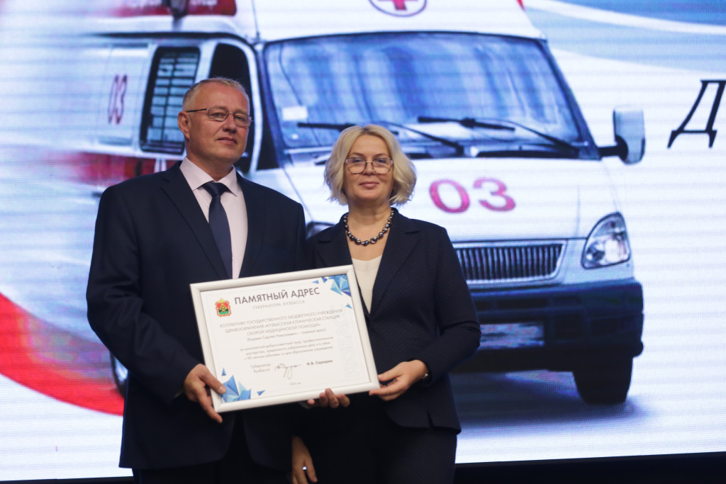 В честь юбилея коллективу станции скорой медицинской помощи был вручен Памятный адрес Губернатора Кузбасса. Сотрудники и ветераны станции были удостоены областных наград на праздничном приеме.