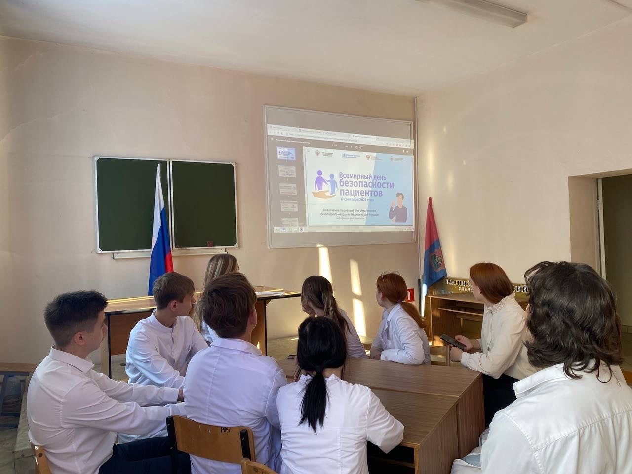В рамках классных часов студентам рассказали о глобальных целях Всемирного дня безопасности пациентов и рисках в медицине, также обучающиеся приняли участие во Всероссийской олимпиаде по безопасности в здравоохранении.