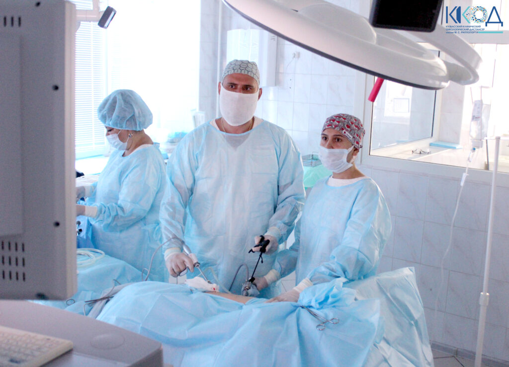 Специалисты нашего онкодиспансера приняли решение о симультанном оперативном вмешательстве. Хирургическое лечение, которое длилось более трех часов, проводили врач-онколог отделения онкогинекологии Мансура Абакаровна Ходжахова и врач-онколог отделения онкоурологии Павел Сергеевич Кофанов (в операционную бригаду также входили врач анестезиолог-реаниматолог Ольга Святославовна Гусенкова , операционная медицинская сестра Жанна Романовна Сабурова , медицинская сестра-анестезист Жанна Валерьевна Брокевич ). Сначала специалисты выполнили лапароскопическую резекцию левой почки, пораженной раковым процессом, затем – экстирпацию матки с придатками. Опухоль почки достигала 2 см, а вот саркома матки разрослась уже до 10 см!
