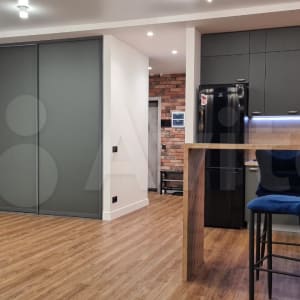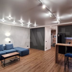 Стильная современная студия со свежим дизайнерским ремонтом.