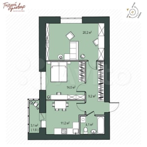 Функциональная классическая двухкомнатная квартира с просторной жилой комнатой, светлой спальней и вместительной кухней с выходом на балкон. В холле предусмотрена ниша под гардероб.