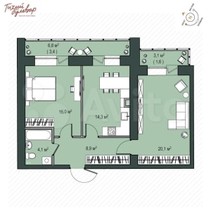 Просторная двухкомнатная квартира с двумя балконами. Большая гостиная, изолированная кухня и светлая спальня. Каждая комната имеет свой выход на остекленный балкон или лоджию. В коридоре предусмотрена ниша под гардероб.