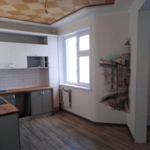 индивидуальному проекту, натяжные потолки, пол паркетная доска, ванная и туалет выложены кафелем, в квартире одна ванная комната и отдельно туалет. У жилого комплекса благоустроенные детские площадки, в шаговой доступности магазины, детский сад. По онлайну, Вы сможете наблюдать как во дворе в полной безопасности гуляют Ваши дети.