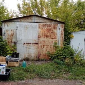 Метал толстый. В гараже имеется погреб и смотровая яма.
