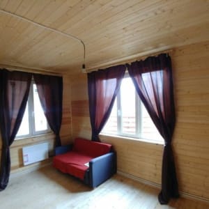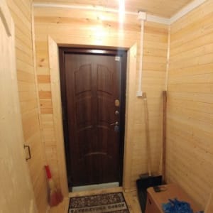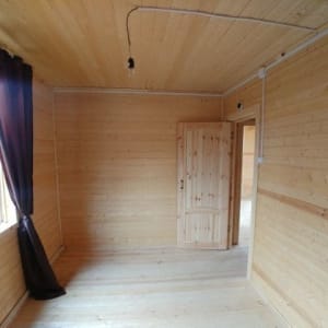 Имеет внешнюю и внутреннюю отделку: снаружи имитация бруса + покраска, изнутри деревянная вагонка.