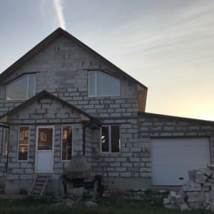 Стeны из cибита 30. Крыша - металлочерепица. Фундамент - ростверк с буронабивными сваями ф. 300., ширина ленты - 40 см. При желании могу показать все фото с процесса стройки. Между этажами есть армопояс! Возможность подключения к центральному водопроводу. Газ.